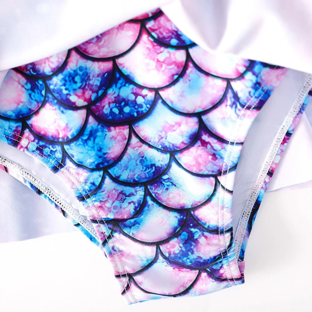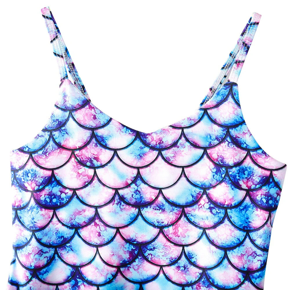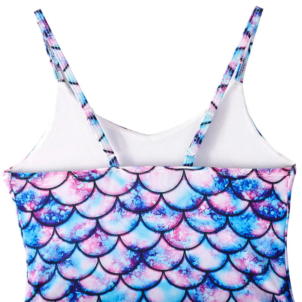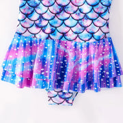 Girls’ Fish Scale Print One-Piece Swimsuit – Cute Kids Beach Bathing Suit for 3–12 Years