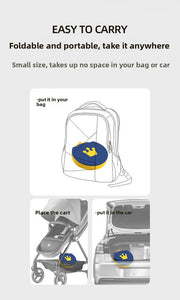 - Compact & Portable: When folded, it transforms into a small, flat disc that takes up minimal space. It is designed to be carried effortlessly in a nappy bag, stroller basket, or kept in the boot of your car for emergencies.