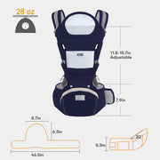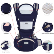 6-in-1 Adjustable Baby Carrier with Hip Seat – 11.8–15.7in Adjustable Height, Breathable Mesh & Multi-Position Carry for Newborn to 36 Months (Blue)